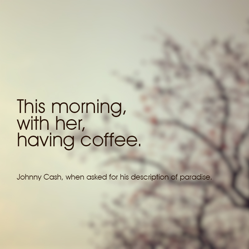 This morning, with her, having coffee.” ~ Johnny Cash (when asked